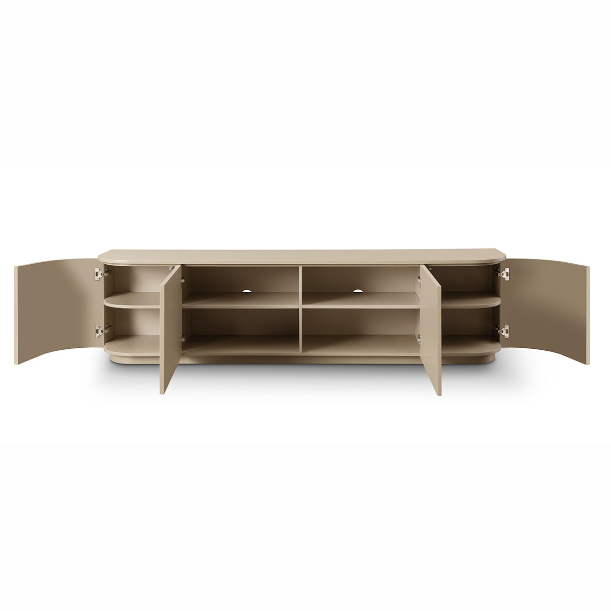 ConfigurationThe Luna entertainment unit features a sleek curved profile and push open doors. Available in 3 finishes and 2 sizes.Measurements 2000mmW x 420mmD x 520mmHAvailable InSone (As pictured)OakBlack